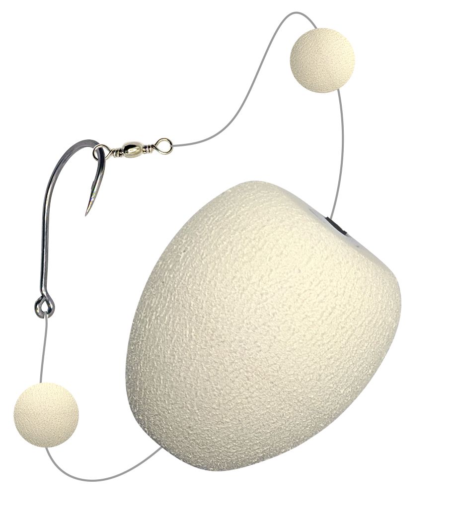 Para a montagem recomendamos que o pescador utilize 20 cm de linha de chicote, amarre o girador em uma ponta, e passe a outra ponta pelo furo superior da boia do pão JRPESCA, após, amarre um anzol na ponta da linha restante de modo que o anzol fique a 10 cm da parte inferior da boia do pão JRPESCA. Agora, é só passar uma chumbada de 10 g na linha da carretilha, inserir também a miçanga e amarrar sua linha na parte superior do girador.