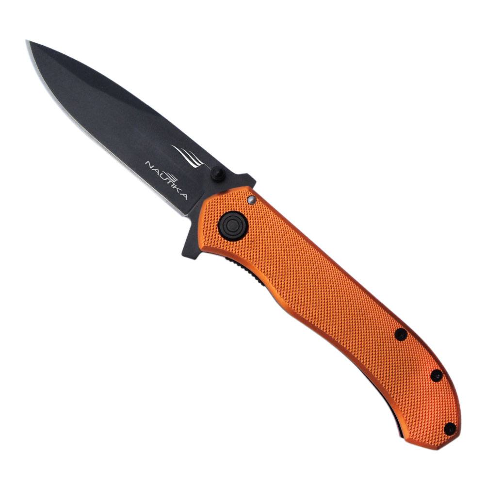 O canivete Skaf da NTK possui saque fácil e tem tamanho médio (20cm de comprimento quando aberto).